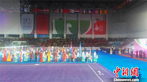 资料图:9月28日,第14届世界武术锦标赛在喀山开幕。图为各国运动员入场。中新网记者 王婧 摄