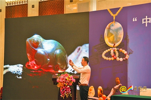 在人民大会堂向来宾展示精品琥珀 云南日报记者 朱金磊 摄