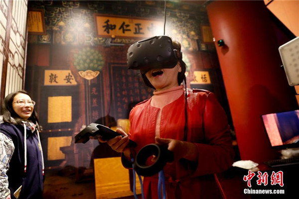 图为运用VR技术参观养心殿。中新社记者 杜洋 摄
