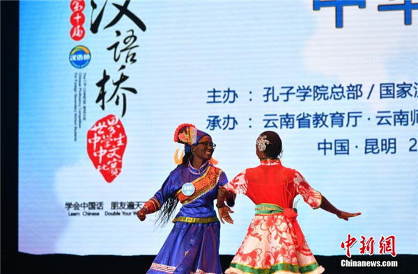 10月19日,第十届“汉语桥”世界中学生中文比赛在昆明进行中华才艺比赛,来自96个国家的200余参赛选手在舞台上秀“功夫”,展中华才艺。