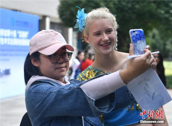 10月19日,参赛选手与中国学生合影。中新社记者 任东 摄