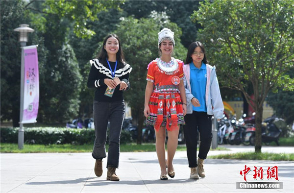 10月19日,参赛选手身穿云南少数民族服饰准备才艺展示。中新社记者 任东 摄