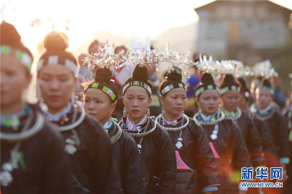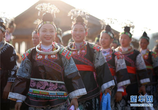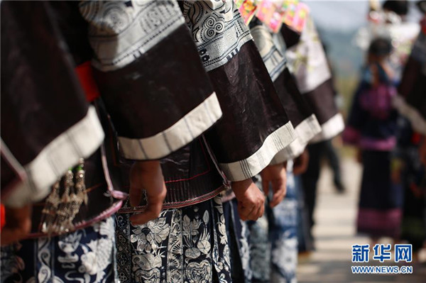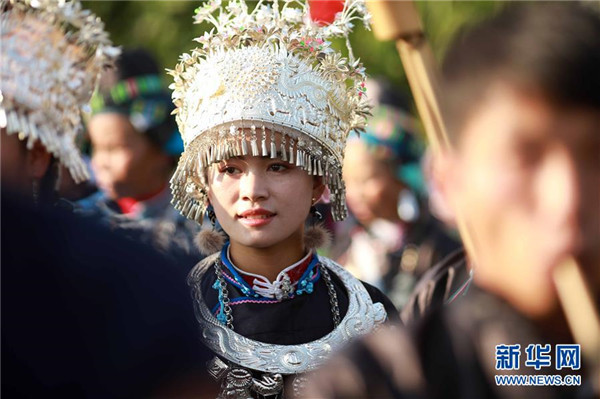 10月30日,贵州省黔东南苗族侗族自治州丹寨县扬武镇排莫村,身着盛装的苗族同胞在走向芦笙场。新华社发(黄晓海 摄)