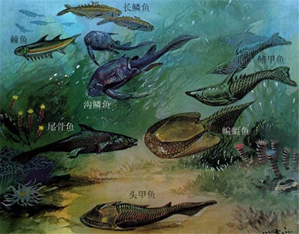 4亿年前的地球上,海洋占据地球的绝大部分区域。生活在海洋里的鱼类通过演化已经分化为截然不同的5大类:无颌类、盾皮鱼类、棘鱼类、软骨鱼类以及硬骨鱼类。其中无颌类、软骨鱼类和硬骨鱼类从那时起,一直延续到今天。而盾皮鱼类和棘鱼类则已经灭绝了。这些4亿年前的鱼类都长什么样呢?