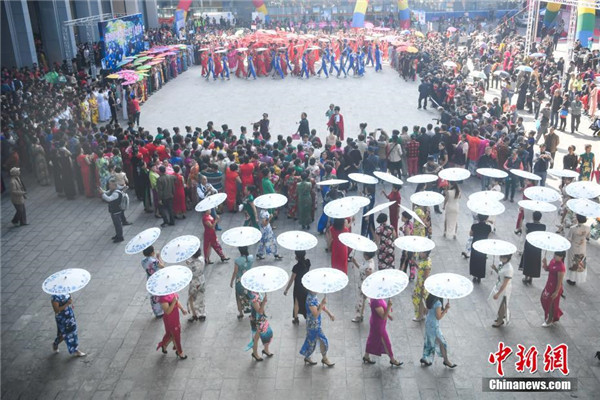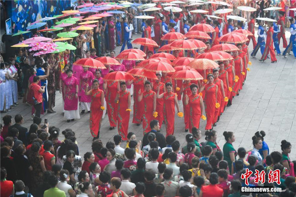 昆明上演千人“旗袍秀” 展示旗袍独特魅力