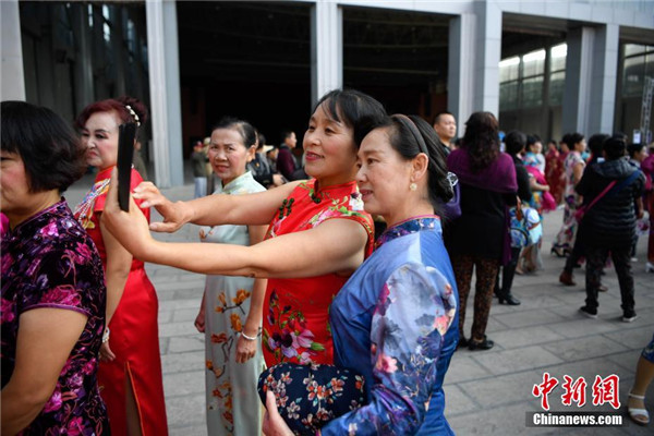 11月1日,昆明千余旗袍爱好者相聚昆明国际会展中心,向市民展示传统旗袍的独特魅力,吸引众多市民观看。中新社记者 刘冉阳 摄
