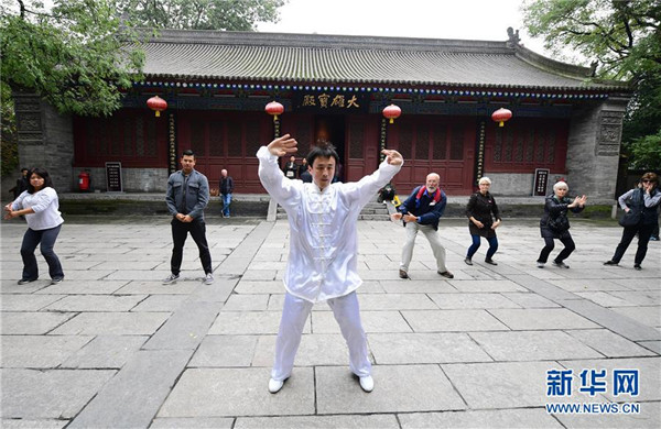 在有着1300余年历史的世界文化遗产、西安荐福寺小雁塔下,赵庆脱下夹克衫露出一身白色练功服,待小音箱的音乐响起,便轻舒猿臂打起太极长拳。不一会儿,就吸引不少来此游览的外国友人加入到练习的行列。赵庆一边随心所欲风生水起,一边用英语或西班牙语给外籍游客讲授动作要领。