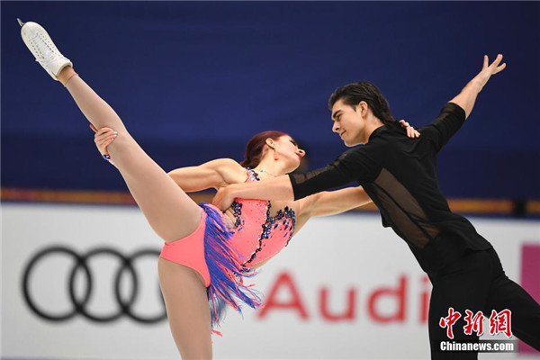 11月3日,2017中国杯世界花样滑冰大奖赛在北京举行。图为参加冰舞-短舞蹈的美国组合埃莲娜·波格里宾斯基/亚历克斯·伯诺伊斯。中新社记者 崔楠 摄