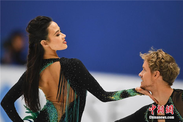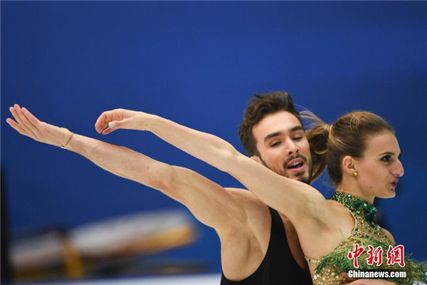 11月3日,2017中国杯世界花样滑冰大奖赛在北京举行。图为参加冰舞-短舞蹈的法国组合加布里埃拉·帕帕达吉斯/吉约姆·西泽龙。中新社记者 崔楠 摄