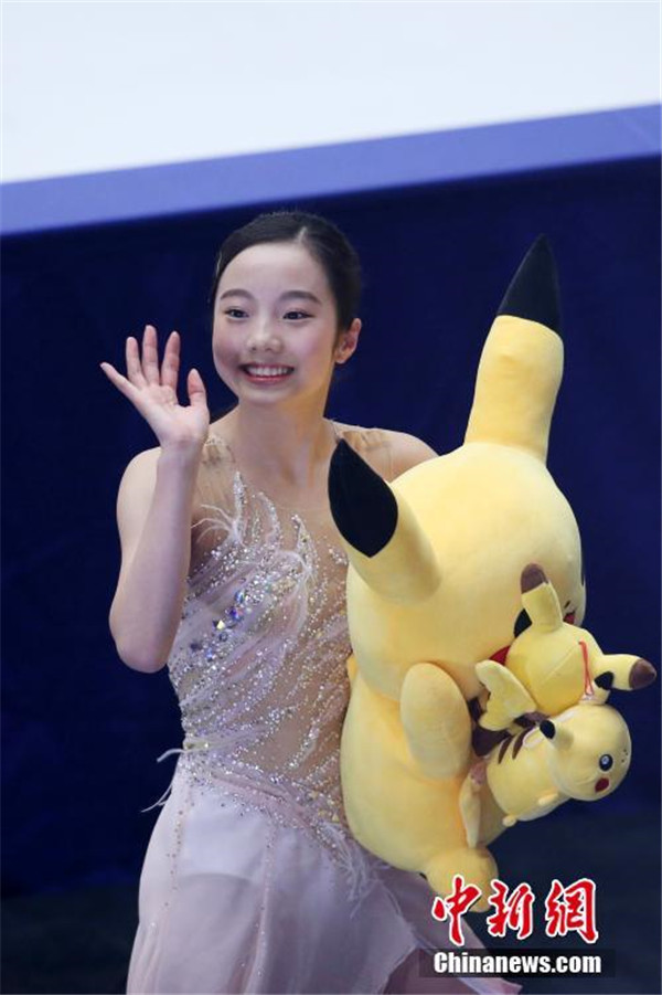 11月3日,由国际滑联主办的2017年中国杯世界花样滑冰大奖赛在北京开幕。本届比赛共吸引了来自11个国家的60名顶级花样滑冰运动员前来参赛。图为日本选手本田真凛赛后向观众致意。中新社记者 韩海丹 摄