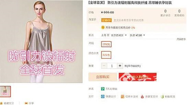 流言:自引力波被发现以来,网上一些商户迅速推出“全球首发!由高科技纤维制成的防引力波辐射吊带背心,专为孕妇打造……”等带有引力波噱头的产品。