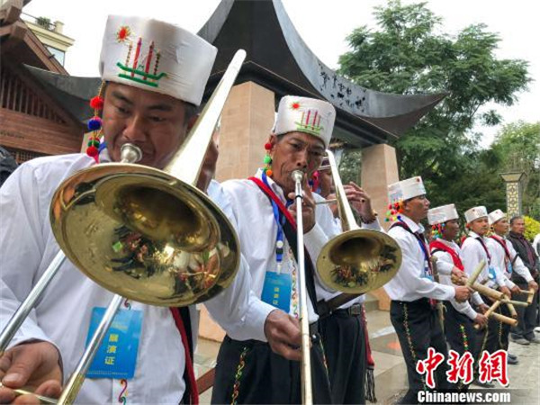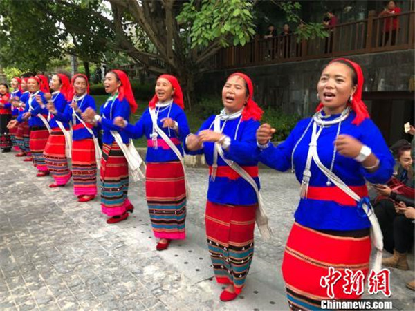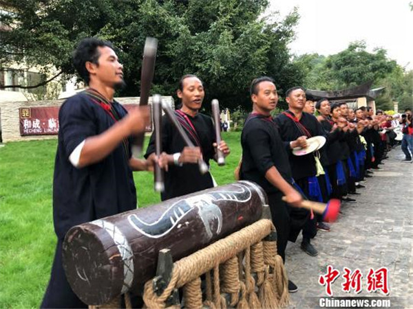 当地少数民族民众欢迎参加开幕式的嘉宾。任东 摄