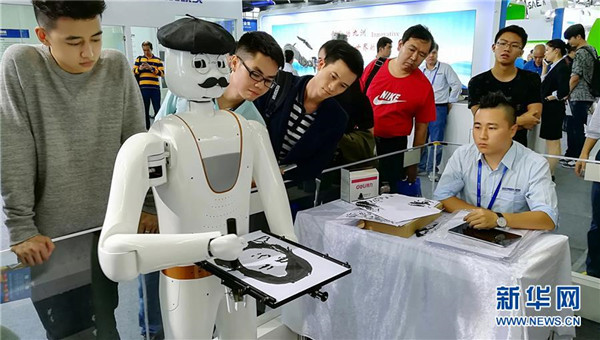 11月16日,在深圳举行的第十九届中国国际高新技术成果交易会上,深圳市智能机器人研究院展出的一款智能识别机器人,现场免费为观众绘制人脸图像。