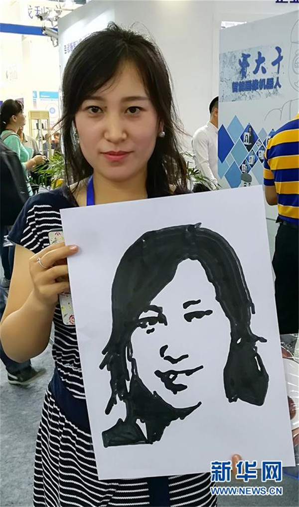 11月16日,机器人在为一名参观者绘制人脸图像。新华社记者 周科 摄