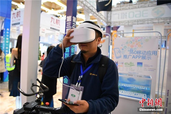11月22日,观众体验VR产品。中新社记者 刘冉阳 摄