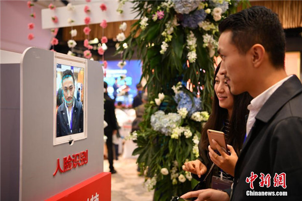 11月22日,参观者体验人脸识别技术。中新社记者 刘冉阳 摄