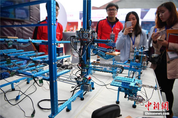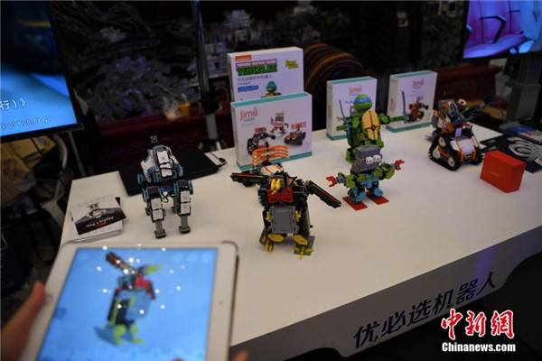 11月22日,用平板电脑操控的机器人。中新社记者 刘冉阳 摄