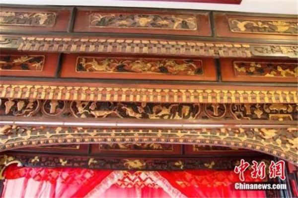 床楣共四层,每一层都刻有不同寓意的花鸟草兽。