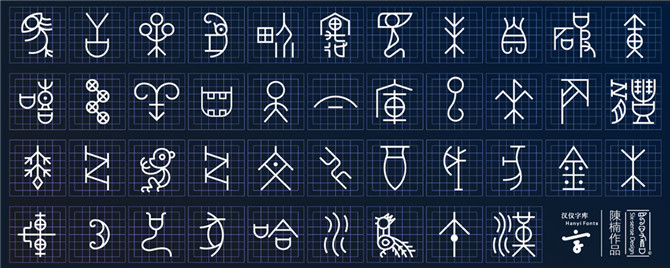 除了释读甲骨文这种“简单直接”的赚钱方法,开发甲骨文的艺术价值则是更为优雅的选择。今年九月底,汉仪字库与清华大学美术学院视觉传达系副主任、中国古文字艺术研究中心副主任陈楠合作,发布了世界首款甲骨文设计字库——汉仪陈体甲骨文字库。