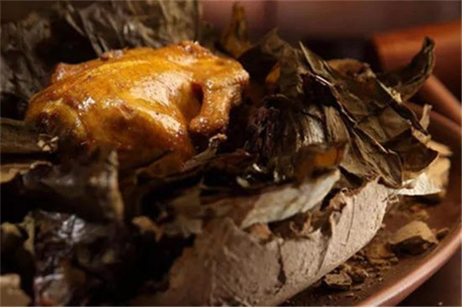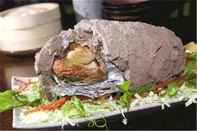 很早以前,有一个叫化子,沿途讨饭流落到江南村庄。一日,他偶然得来一只鸡,欲宰杀煮食,可既无炊具,又没调料。他便将鸡杀死后去掉内脏,带毛涂上黄泥、柴草,把涂好的鸡置火中煨烤,待泥干鸡熟,剥去泥壳,鸡毛也随泥壳脱去,露出了的鸡肉。