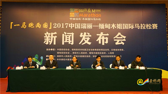 11月28日上午,德宏傣族景颇族自治州州委、州政府在昆明举行新闻发布会,介绍2017中缅瑞丽-木姐国际马拉松筹备情况,赛事将于12月31日上午9:00在瑞丽市鸣枪开跑,届时,来自国内外约5000余名运动员将相聚云南边城瑞丽,感受中国史无前例的跨国马拉松魅力。