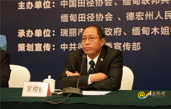 缅甸驻昆总领事吴梭柏出席发布会并回答记者提问。吴梭柏表示,缅中友谊源远流长,两国开展了形式多样的友好合作。此次马拉松赛事是一项国际性的赛事,将加深两国胞波情谊,促进边境地区的友好合作,是缅中友好交往的新的里程碑,同时也服务了“一带一路”建设。