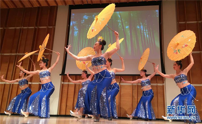 11月28日,“文化中国·七彩云南”展演团在美国纽约墨尔金音乐厅表演舞蹈。