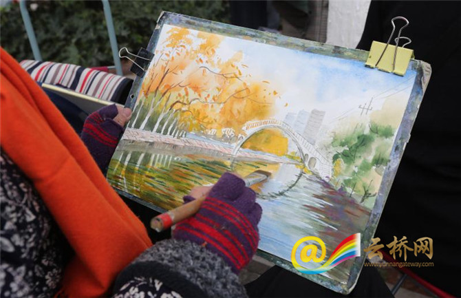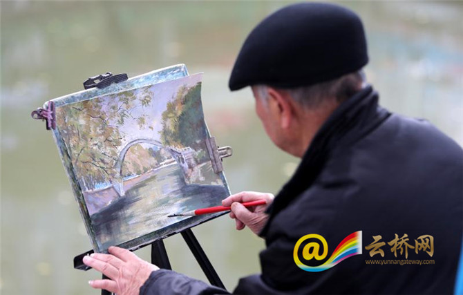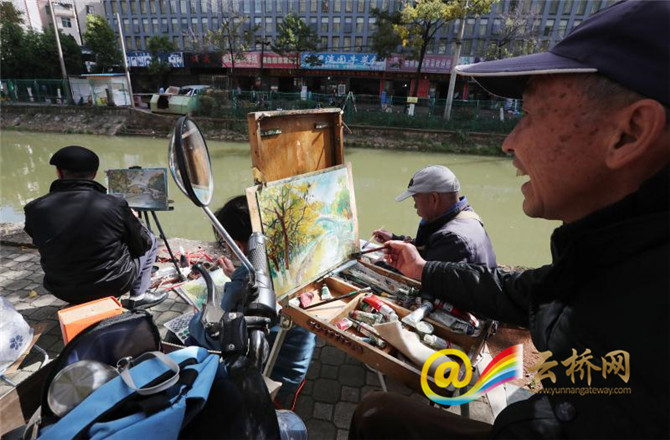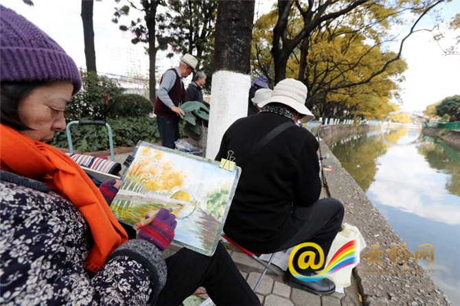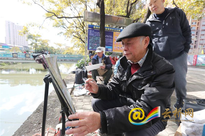 12月1日,昆明大观河沿岸金色的滇朴倒映水面,冬日春城的美丽景致让人陶醉,来自“星期五”写生社的老年画友们用多彩的画笔描绘下眼前的美景,也让晚年的生活更加缤纷。