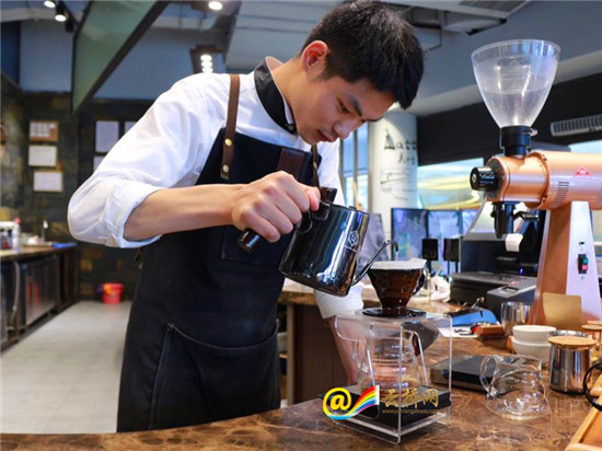 孙健峰做咖啡师已经一年半,他说自己大学时就非常喜欢喝咖啡,经常在宿舍制作。“咖啡散发的香气,吸引了不少旁边宿舍的同学前来品尝,给了我不小的成就感。”毕业后,孙健峰决定追寻自己的爱好,进入咖啡馆工作。从当学徒开始,他通过了考试,取得了咖啡师上岗资格。“上学期间,我参与过一个关于云南小粒咖啡研究的课题,发现很多人对咖啡特别是云南咖啡的认识还不够。其实,云南咖啡是世界上品质最好的咖啡之一。”孙健峰告诉记者,他做咖啡师并参加比赛,就是希望通过努力,让更多人感受云南咖啡的美妙,为云南咖啡走得更远贡献自己的力量。