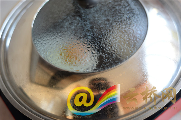 步骤五:锅里水蒸气会将鸡蛋闷熟,根据个人需要(蛋黄熟的程度)控制时间将鸡蛋起锅,一般在2到4分钟之间。倒上一点味极鲜更美味哦。
