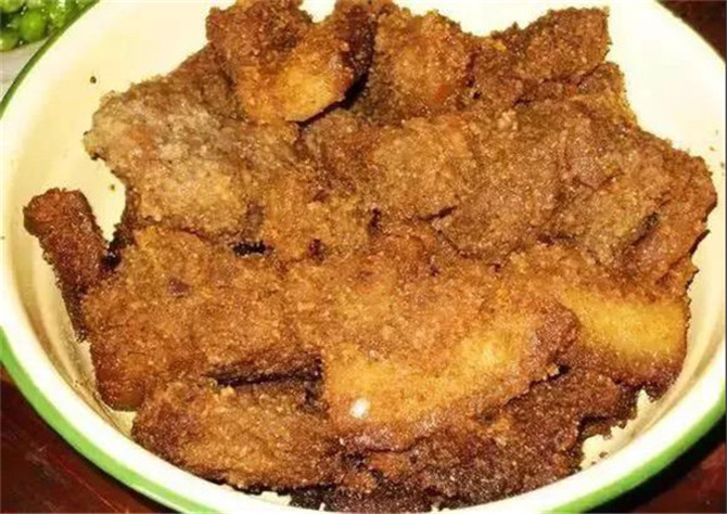 杀猪饭的坨坨粉蒸肉,采用相对较肥的肉作为主料,将肉砍成坨坨形状,煮或炒到刚刚透心,将其与先前准备好的作料(包括炒制好的面粉、盐巴、辣椒面等)搅拌均匀,蒸熟即可,大口吃肉,鲜而香纯,肥而不腻。