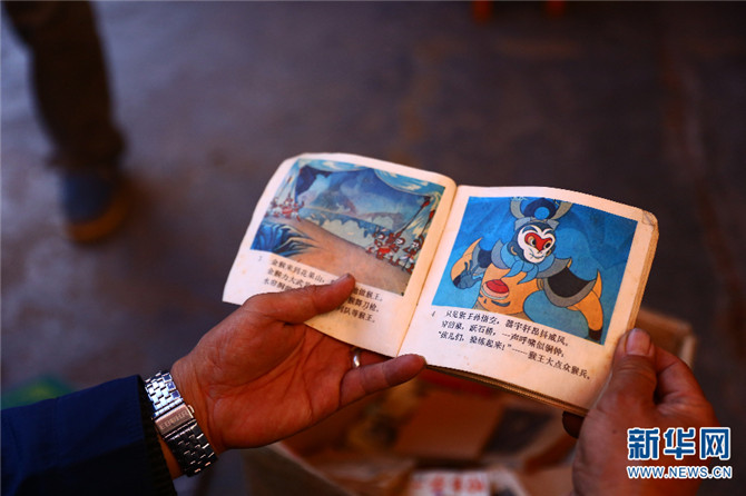 这是李进最喜欢的一本小人书,由上海美术电影制片厂出版的彩色版《大闹天宫》。尽管边角已经有些破损,但是里面精致细腻的画面和饱满鲜艳的色彩依然引人注目。