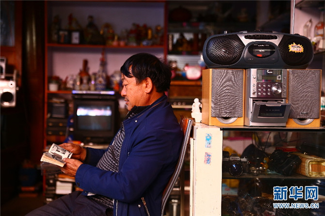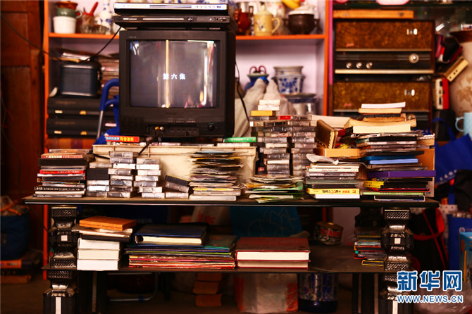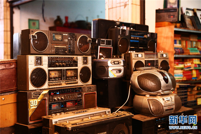 这是他的书屋中收藏的一部分收音机、录音机,在现代网络和科技发达的今天,这些略显笨重的播放器看起来格外的复古。