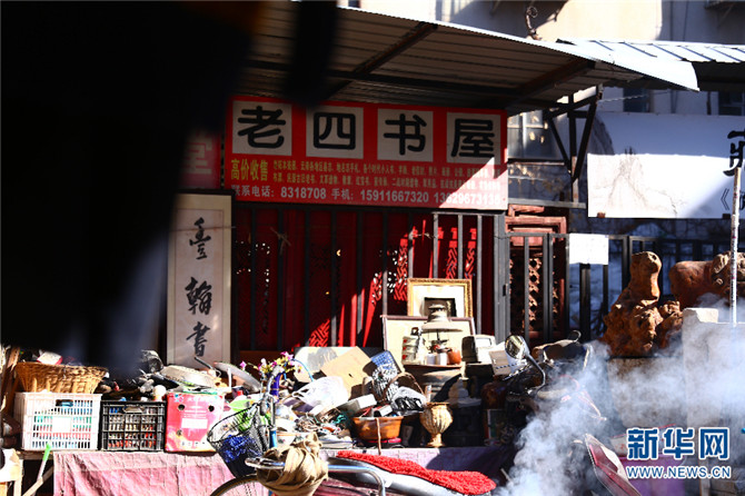 “老四”原名李进,来往客人都唤他“老四”。做了几十年生意,店铺里的藏书越来越多,但是李进总能从浩如烟海的书堆中准确找到顾客需要的书籍。