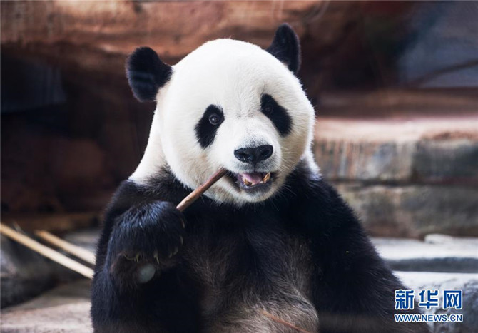 这是2017年5月30日在荷兰乌得勒支省雷嫩市的欧维汉兹动物园拍摄的大熊猫“武雯”。来自中国大熊猫保护研究中心的两只大熊猫“星雅”和“武雯”在度过一个多月的检疫期后,于当日首次与公众见面。新华社记者 龚兵 摄
