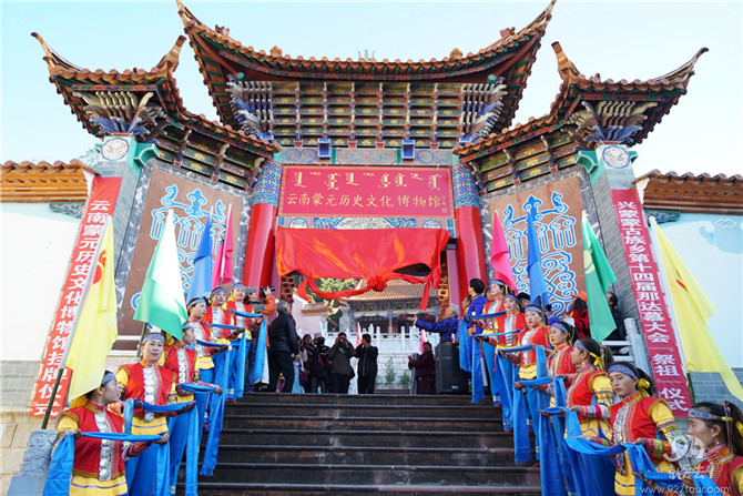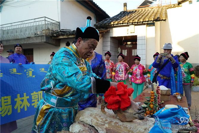 12月14日,玉溪市通海县兴蒙蒙古族乡迎来第十四届那达慕大会。上午,蒙古族祭祖活动在三圣宫举行,祭祖是“那达慕”盛大活动之一,活动邀请蒙古族文化传承保护中心华丕和主持。
