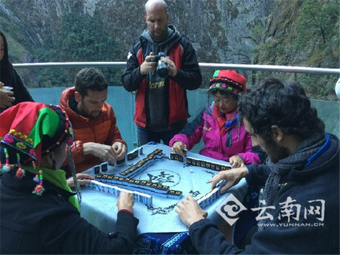 大理石门关高空玻璃栈道上演麻将挑战赛