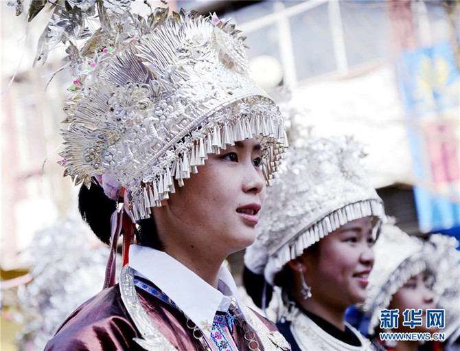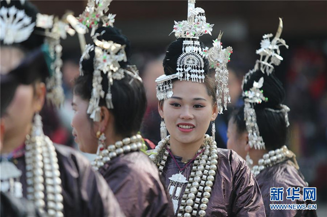 12月18日,身着盛装的侗族同胞参加巡游。当日,2017中国侗年暨第八届黎平·中国侗文化旅游节“非遗”文化巡游在贵州省黔东南苗族侗族自治州黎平县举行,当地侗族同胞欢聚一堂,喜迎侗年到来。新华社发(宁坚 摄)