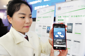 工作人员用手机展示120“微急救”上线平台。记者刘凯达摄