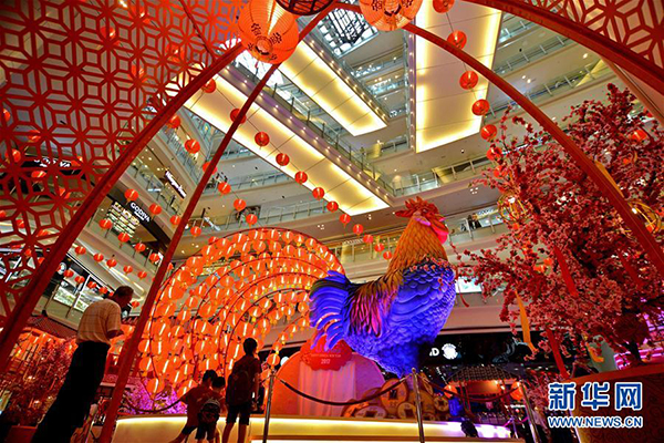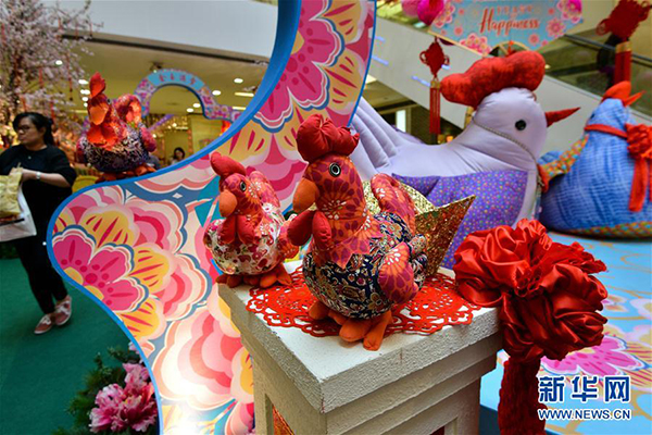 这是1月20日在马来西亚吉隆坡拍摄的布置在商场内的鸡年饰品。马来西亚首都各大商场布置鸡年饰品,迎接农历鸡年的来临。新华社发(张纹综摄)