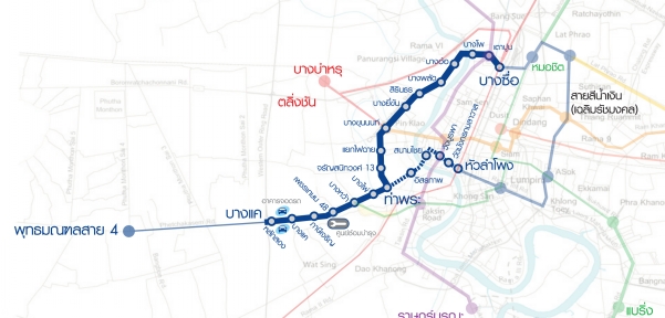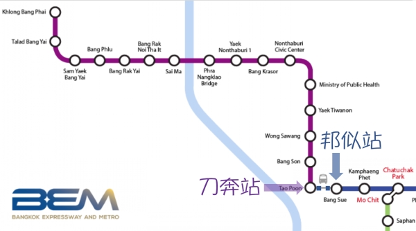 将在今年8月开通的蓝线与紫线衔接段示意图(图片来源:曼谷高速路与轨道交通公司)
