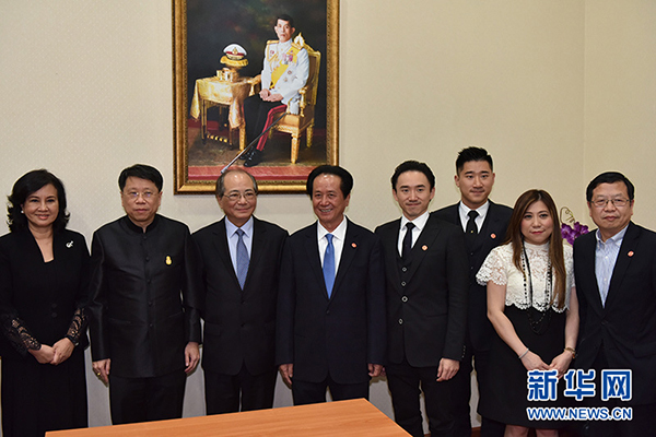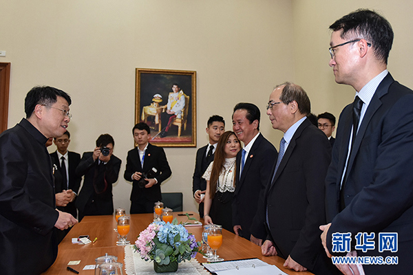 2月20日,在泰国曼谷,中国香港特区教育局局长吴克俭(右二)与泰国教育部部长提拉杰(Teerakiat Jareonsettasin,左一)就在泰推出“一带一路奖学金”计划举行会议。 新华网记者 李芒茫 摄