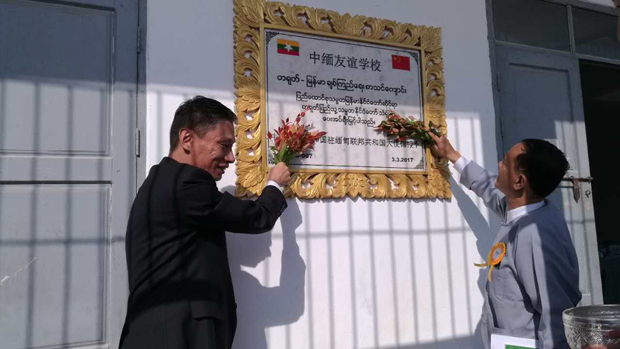 云南网讯 记者据中华人民共和国驻缅甸联邦共和国大使馆网站消息,3月3日,中国驻缅甸使馆资助的第七所中缅友谊学校授牌仪式在皎漂第一中学举行。