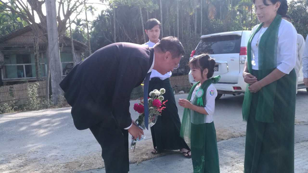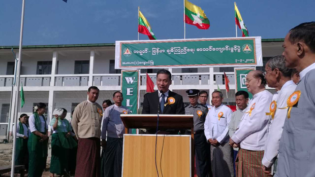 驻缅甸使馆公使衔参赞陈辰和缅甸教育部基础教育司副司长吴苗丹、胶漂县县长、胶漂县政府相关部门负责人、学校师生200余人出席。