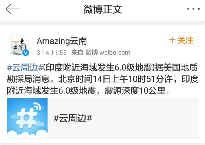 印度附近海域发生6.0级地震