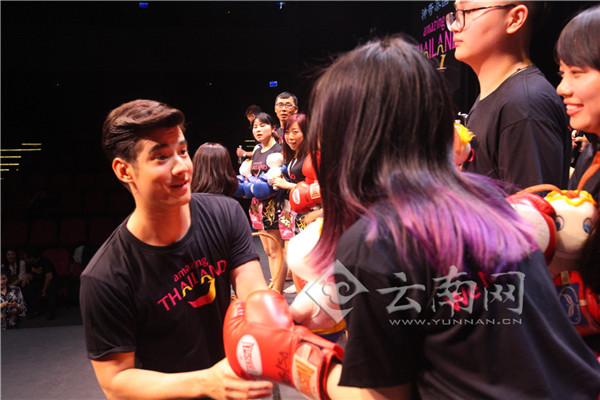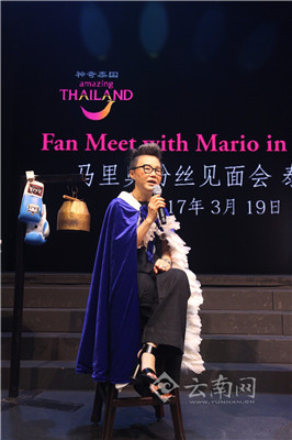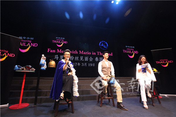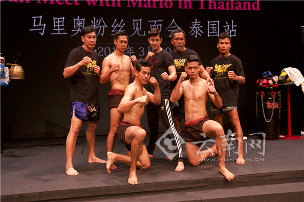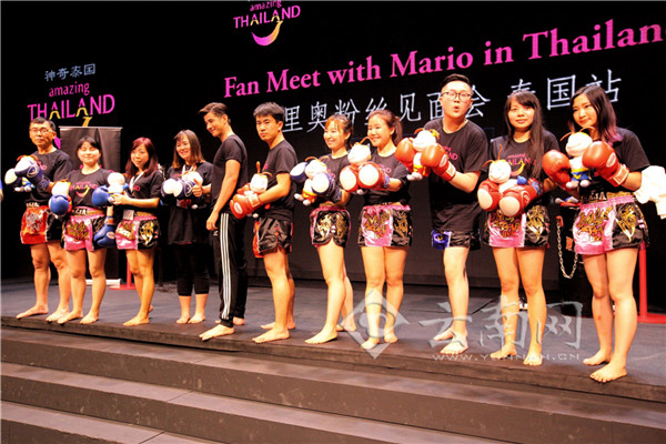 3月19日,泰国影视明星马里奥在曼谷亚洲码头泰拳秀表演馆举行粉丝见面会,与来自国内的26名“蘑菇”粉丝和媒体代表见面,现场和蘑菇粉们一起打泰拳,零距离互动。