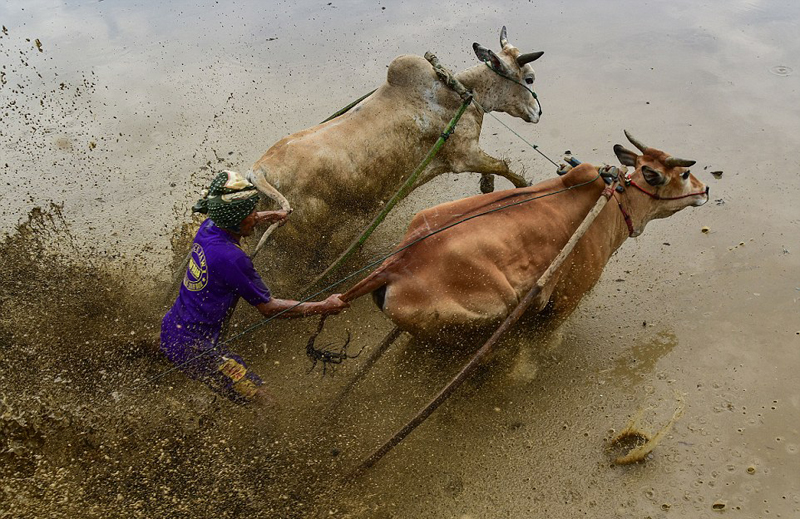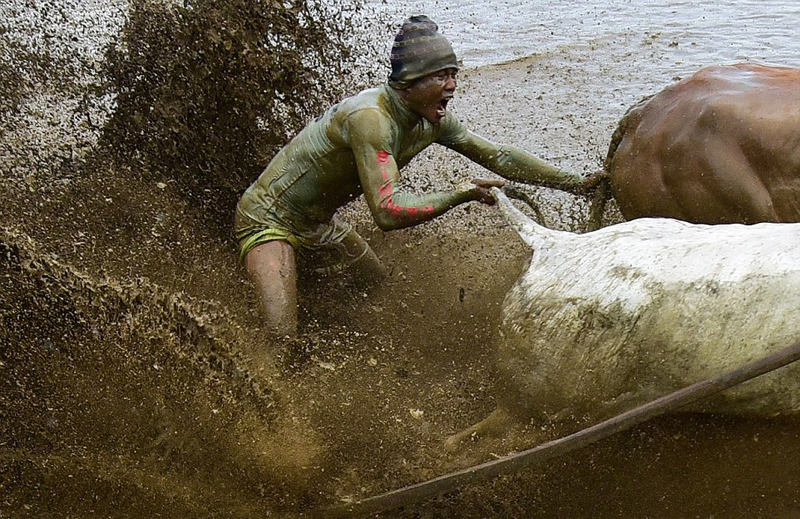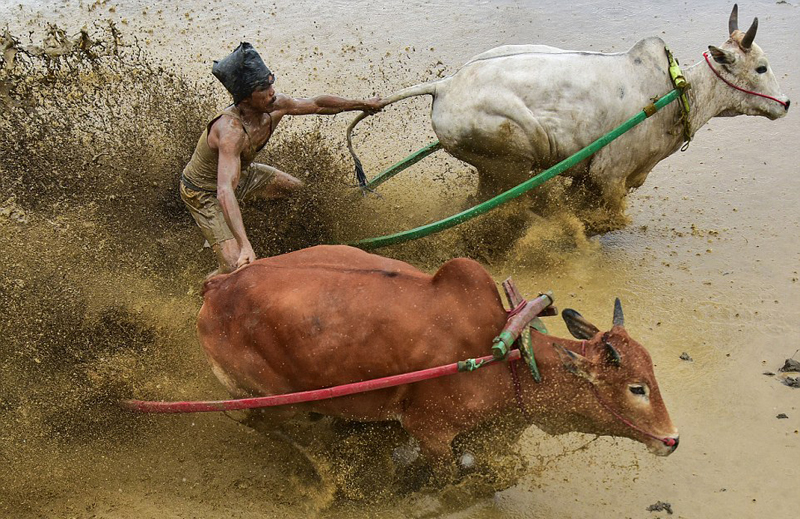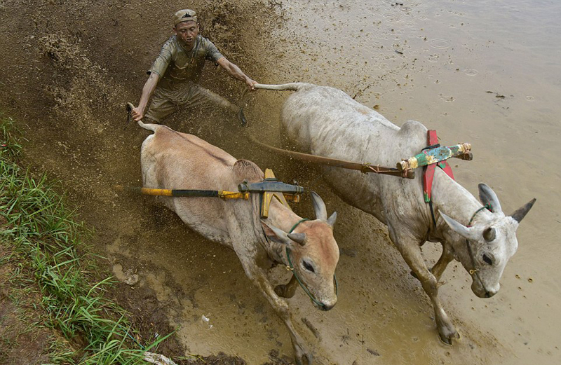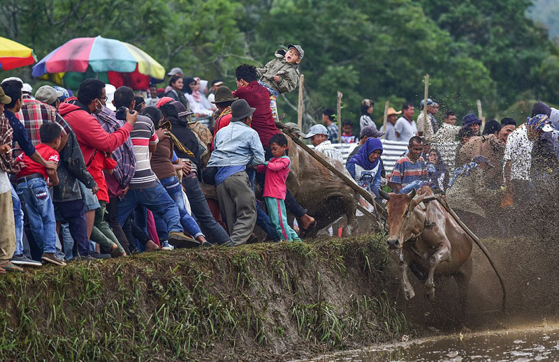奔牛赛(Pacu Jawi)是印尼苏门答腊岛一项已有400年历史的传统节日活动,是农民在收获季后举行的比赛。