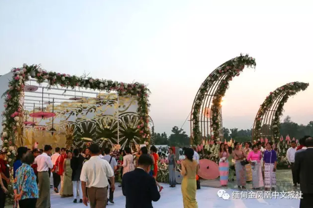 昨日(3月21日晚),一场盛大的婚礼在仰光Dagon Golf City隆重举行。这场婚礼包括多名国家政府官员在内的来宾总数竟达到了5000名,场面甚为壮观!令人叹为观止!当晚,新郎新娘身着传统缅装,依照缅甸最传统的新婚习俗,在5000来宾的热烈掌声中喜结连理。