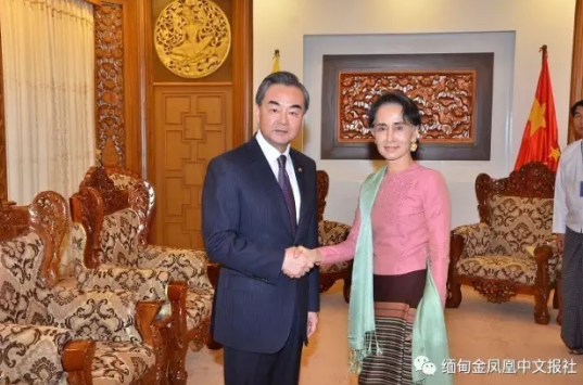 杜昂山素季和王毅会晤结束后共同举行的记者会上杜昂山素季表示,缅中双边关系无论从政治、社会还是经济角度都很重要。王毅表示,中国政府愿意为两国之间"建立更多互信"作出不懈努力,同时,中国支持缅甸的民族和解进程。他表示,中国是缅甸的友好邻邦,中方愿意推进两国之间的关系。