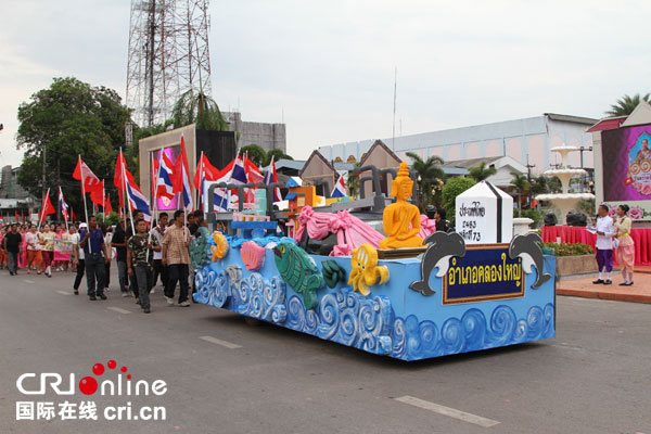 23日下午,泰国达叻府在府中心广场举行盛大仪式,庆祝达叻府回归泰国110周年(佛历111年)。达叻府各界的上万名群众组成花车巡游方阵,列队依次走过中心广场,表达他们庆祝回归的热烈之情。泰国达叻府府尹参纳、泰国达叻府行政管理委员会主席维谦出席仪式并分别发表主旨演讲。
